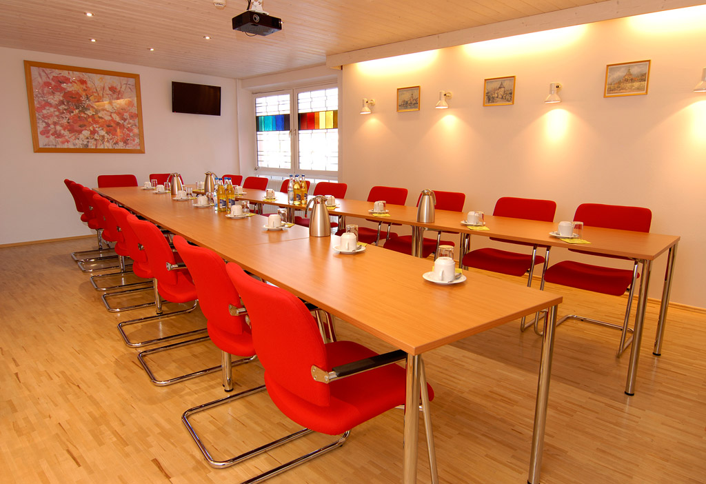 Für Ihre Konferenzen, Schulungen, Tagungen, Vorträge oder Meetings können wir Ihnen zwei Tagungsräume und zwei Besprechungsräume anbieten. In jedem Raum ist ein Flat-TV angebracht. In den Tagungsräumen stehen Ihnen auch Beamer und Leinwand, Flipcharts, Pinnwände und ein Rednerpult zur Verfügung.